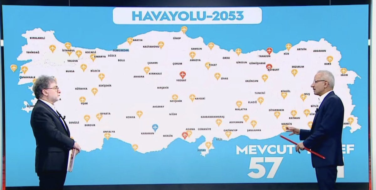 Zaman zaman ‘ülkemize dengeli yapmadınız’ diyorlar. Nüfus yoğunluklarını düşünün. Karadeniz’deki havalimanı sayısını ve Marmara’daki Ege’deki havalimanı sayısını düşünün. 61 havalimanı olacak. 4 tane yeni havalimanı yapacağız. 3 tanesinin yapımı devam ediyor. Çukurova’daki havalimanını yapıyoruz. Adana’daki havalimanı eğitim alanı olarak kullanacağız. Bayburt Gümüşhane devam ediyor. Trabzon da var. Onu yeniliyoruz. Yozgat da var. Karaman’da da planlıyoruz. Yakında düşünmüyoruz ama gelecek projeksiyonunda var.