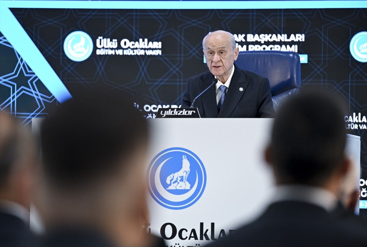 Ülkü Ocaklarının hakkı, halkı ve hakikati gözeten, iman, ahlak, vatan ve millet sevgisiyle temellenmiş, kaynağını Türk-İslam ülküsünde bulan Türk milliyetçiliği mücadelesinden rahatsızlık duyanların, yalan ve iftira çıtasını yükseltmesinin son derece doğal olduğunu bildiren Bahçeli,