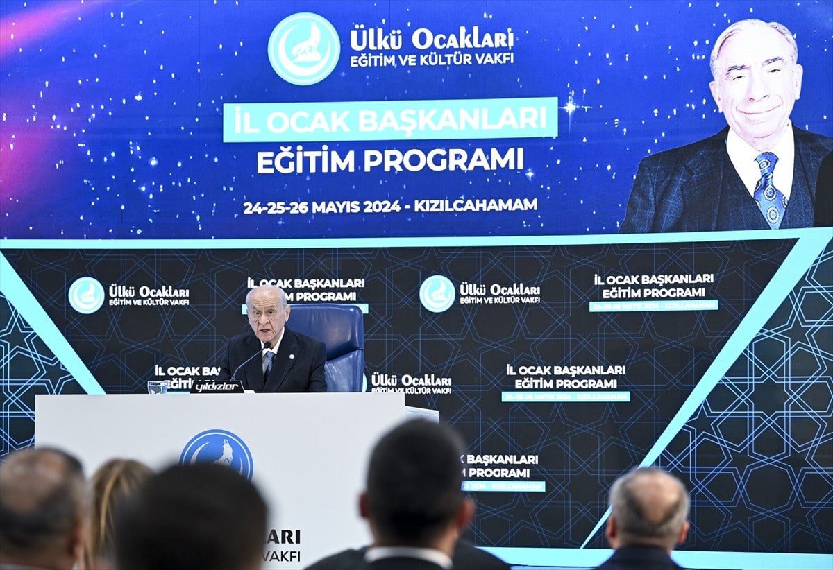 MHP Genel Başkanı Devlet Bahçeli, Kızılcahamam’da Ülkü Ocakları Eğitim ve Kültür Vakfı il başkanlarına yönelik eğitim programı öncesinde basın toplantısı düzenledi.