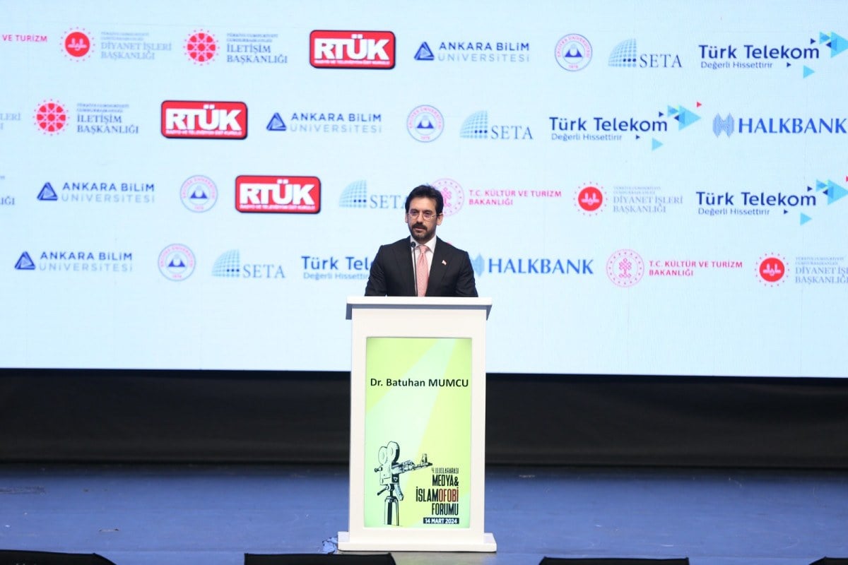 Burada bir konuşma yapan Mumcu, medya ve İslamofobi konusuna değinerek sözlerine “Sayın Başkanım, saygıdeğer katılımcılar, değerli konuklar…