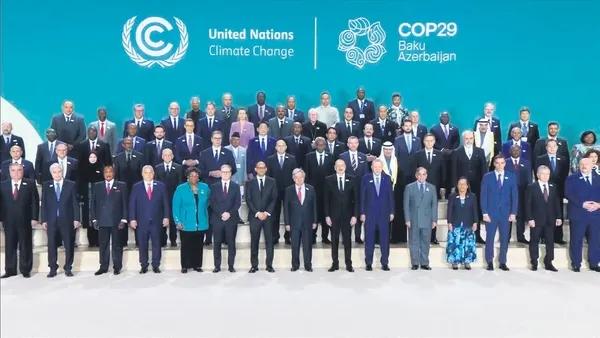 COP29 Dünya Liderleri İklim Zirvesi’ne katılan Cumhurbaşkanı Erdoğan ve eşi Emine Erdoğan’ı, Bakü Olimpiyat Stadyumu’nun yanındaki zirve için kurulan alanda Azerbaycan Cumhurbaşkanı İlham Aliyev ile BM Genel Sekreteri Antonio Guterres karşıladı. COP29 Konferans Salonu’nda ise Azerbaycan Cumhurbaşkanı Aliyev’in eşi Mihriban Aliyeva, Emine Erdoğan’a sarılarak, “Hoş geldiniz” dedi.