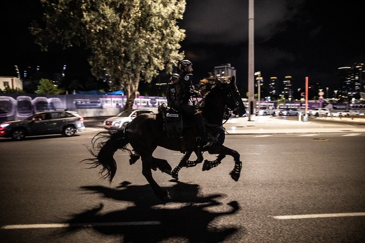 Ayalon Otoyolu’na ilerlemek isteyen göstericilere Kaplan Caddesi’nde İsrail polisi, atlı birliklerle müdahale etti. İsrail polisi ile göstericiler arasında uzun süre arbede yaşandı. Göstericiler, kolluk kuvvetlerinden sorumlu aşırı sağcı Ulusal Güvenlik Bakanı Itamar Ben-Gvir’e hitaben “Ben-Gvir terörist”, “Faşistlerin polisi” diye sloganı attı.